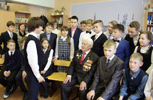 24 ноября учащиеся 6 А класса встретились с ветераном Великой отечественной войны Салимгареевым Касимом Салимгареевичем. Ветеран рассказал ребятам о своем детстве, о том, как встретил известие о начале войны, о том, как сражался против фашистских захватчиков. Ребята с интересом слушали рассказ очевидца страшных военных лет, участника Курской битвы. В знак благодарности ребята подарили Касиму Салимгареевичу билеты на оперу "Джалиль", которые приобрели на средства, полученные от сдачи макулатуры.
