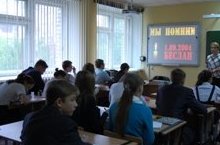 Сегодня, 3 сентября 2014 года, во всех классах прошли уроки, посвященные 10-й годовщине трагических событий в г.Беслан. Ребята и педагоги почтили память жертв этой страшной трагедии, восстановили хронику событий. Многие ребята не могли сдержать слез, ведь заложниками террористов были их сверстники, такие же дети, пришедшие в школу.