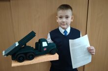 Ученик 3Б класса Артём Калинин изготовил с родителями модель "Катюши" к городскому конкурсу моделей техники времен Великой Отечественной войны.