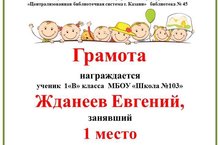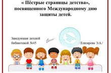 Поздравляем учеников 1Б класса Падюшову Марию, Игошина Давида, Мустафину-Рождественскую Еву, принявших активное участие в литературном флешмобе от районной библиотеки 45 "Пёстрые страницы детства", посвященного Международному дню защиты детей.