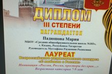 Поздравляем учеников 1 Б класса Игошина Давида и Падюшову Марию, которые под руководством Мустафиной Р.Р. стали лауреатами 3 степени во Всероссийском патриотическом конкурсе "С любовью о России".