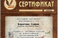 Ученица 1а класса Баратова Сафия приняла участие во Всероссийской детско-юношеской патриотической акции «Рисуем Победу-2020»! Молодец!