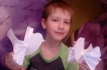 Ученик 1б класса Камашев Илья принял участие в акции под названием "Голубь мира", чтобы выразить свою благодарность ветеранам, показать, что мир надо беречь и защищать.