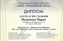 Поздравляем ученицу 1Б класса Падюшову Марию ставшую лауреатом 2 и 3 степени в Международном конкурсе-фестивале "NEXT. ПОКОЛЕНИЕ 2020" (рук. Фефелова Е.Ю.). Желаем дальнейших творческих успехов!