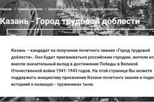 Казань является кандидатом на звание «Город трудовой доблести». Оно присваивается городу Российской Федерации, жители которого внесли значительный вклад в достижение Победы в Великой Отечественной войне 1941-1945 годов, обеспечив бесперебойное производство военной и гражданской продукции на промышленных предприятиях, располагавшихся на территории города, и проявив при этом массовый трудовой героизм и самоотверженность.