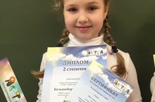 Ученица 2б класса Большебородова София награждена Дипломом 2 степени и памятным призом за участие в Международном конкурсе «Астра»