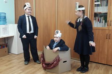 В 3а классе на уроке литературного чтения в рубрике " Наш театр" продолжается работа по использованию элементов театрализации, которые учат творческой работе в группах, распределению ролей и представлению своих инсценировок.