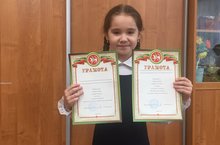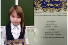 Ученица 2г класса Демеева Полина награждёна грамотой за 3 место в школьном конкурсе "Великолепная пятёрка" на лучшую тетрадь по математике среди вторых классов. Молодец!