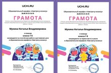 Ученик 1а класса Капарулин Макар получил диплом от Учи.ру за высокие результаты в игре "Сложение". Молодец!