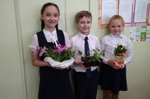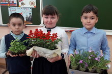 Ученики 4Б класса (кл.рук. Мухина Н.В.) Шакирзянова Алия, Найдёнов Евгений, Садреева Алина приняли участие в акции по озеленению пришкольной территории