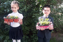 Ученики 1Б класса Беляков Амир и Давыдова Аделя приняли участие в озеленение пришкольного участка!