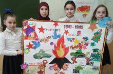Учащиеся 4а класса выпустили плакат ко Дню Победы.
