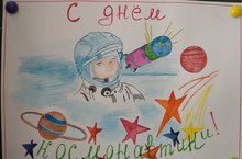 Ученица 1г класса Демеева Полина приняла участие в школьном конкурсе стенгазет, посвященному Дню Космонавтики