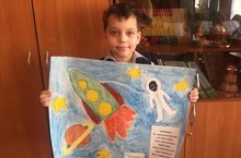 Учащийся 1в класса Баребин Д принял участие в школьном конкурсе стенгазет, приуроченному празднования Дня космонавтики. Давид мечтает стать космонавтом.На своем рисунке он - космонавт.