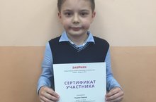 Ученица 1б класса Майнич Олеся награждена сертификатами участника за