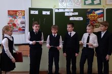 Ученики 4Б класса подготовили музыкальное поздравление для пап и дедушек и вручили им поздравительные открытки, изготовленные своими руками.