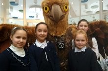 Ученики 4Б класса Васильева Дарина, Шакирзянова Алия, Петрова Анастасия, Садреева Алина, которые стали призерами конкурса "Заповедная природа РТ", были приглашены на награждение, которое состоялось в Экоцентре "Дом". Мероприятие прошло весело с викторинами и заданиями. Присутствовал и символ Волжско-Камского заповедника-орлан белохвостый в виде ростовой куклы,дети смогли не только увидеть орлана и сфотографироваться с ним,но даже потрогать за хвост и большие крылья.