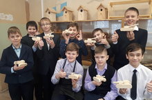Мальчики из 6а класса на уроке технологии сделали подели из дерева.