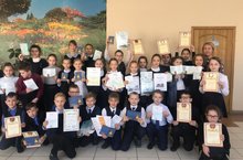 18.02.19 в начальной школе среди учащихся 1 классов была проведена линейка ( награждение учащихся Почетными грамотами, Дипломами за активное участие в конкурсах, олимпиадах внеурочной деятельности.