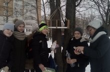 16 февраля учащиеся 7-х классов участвовали в экологической акции "Сделано с любовью" и повесили во дворе школы 9 кормушек для птиц.