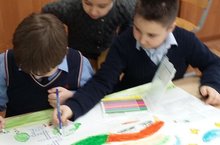 2 б сыйныф укучылары туган тел дэресенэ, торкемнэргэ буленеп, "Ел фасыллары" темасына проект эшлэре эзерлэу белэн мэшгуль.
