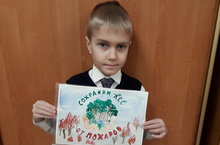 Ученик 2а класса Филиппов Женя выполнил работу- листовку " Берегите лес от пожара" к Республиканскому конкурсу " Сохраним леса Татарстана"