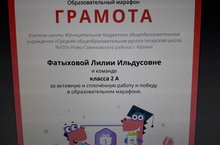 Комада 2а класса награждена Грамотой за активную и сплоченную работу и победу в образовательном марафоне Uchi.ru
