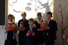 Ученицы 4а класса Загидуллина Диана, Лобачёва Ирина, Махова Аделина приняли участие в конкурсе тыкв к "Halloween"