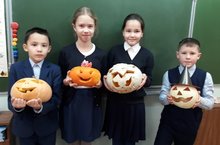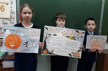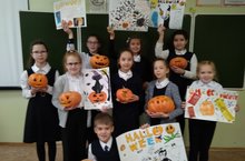 Учащиеся 4б класса приняли участие в конкурсе тыкв и плакатов к "Halloween" (уч.англ.яз. Идрисова А.Р.).