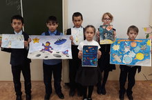 Учащиеся 2г класса (кл.рук.Сулайманова Д.А) приняли участие в школьном конкурсе плакатов, посвящённый Дню космонавтики.
