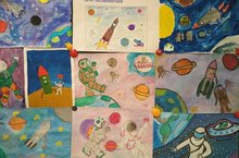 В 3а классе оформлена выставка рисунков, посвященная Дню космонавтики.