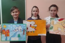 Селина В, Хайрутдинова К, Матвеев М, Шайхутдинова А. приняли участие в школьном конкурсе плакатов к Новому году.