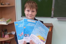 Ученик 1а класса Журавлев Кирилл принимает активное участие в предметных олимпиадах и награжден Дипломами Победителя