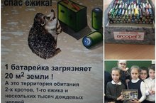 Одна выброшенная батарейка загрязняет 20кв.м земли и 400 литров воды! А это территория обитания 2 кротов, 1 ёжика и тысяч дождевых червей и рыб! Ученики 4Б класса (кл.рук-ль: Сафина Р. З.) запускают акцию: "Сдай батарейку - спаси ёжика! Мы уже собрали 200 использованных батареек! Помогите сделать планету чище! Приносите батарейки в 32 каб. Собранные батарейки будут сданы в пункт приёма опасных отходов!