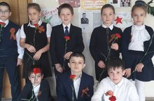 Ученики 1в класса (кл.рук.:Гайфуллина Г.И.) провели тематическую линейку для 3-4 классов - "День Победы!".