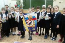 Учащиеся 3 в класса (кл. рук-ль: Андреева М. В.) поздравили мальчиков класса-будущих защитников Отечества с праздником 23 февраля!