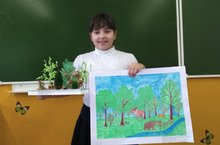 Ученица 4 «В» класса Сафина Диана активно участвует в различных конкурсах. И в этот раз выполнила рисунок и поделку на городской конкурс "Лес - мой зеленый друг"