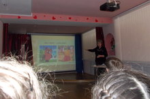 На занятии по внеклассному чтению в районной библиотеке №45 ученики 2б класса приняли участие в викторине по произведению А.Милна "Винни-Пух и все-все-все" (перевод Б.Заходера). В конце викторины ребятам было предложено показать небольшую импровизацию к отрывку из данного произведения.
