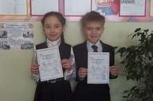 Ученики 2б класса Шакирзянова Алия и Сёмин Сергей награждены сертификатами участника городского фестиваля детского творчества, посвящённого А.С.Пушкину "Мой Пушкин".