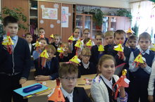 Учащиеся 4а класса (кл.рук.Фатыхова Л.И.) на уроке технологии изготовили своими руками петушка- символа Нового года