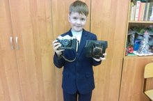 Ученик 2 А класса Рябов Роман принял участие в пополнении экспонатов школьного музея, он принёс фотоаппарат прошлых лет.