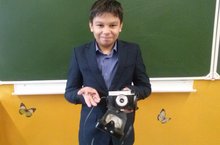 Ученик 4 в класса Кириллов Евгений принес в школьный краеведческий музей фотоаппарат и значки прошлых лет