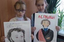 Ученики 4А класса (кл.руков. Фатыхова Л.И.) Овчинникова Ульяна и Баранова Катя приняли участие в городском конкурсе рисунков "Мой Пушкин"