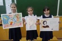 Учащиеся 4 В класса (кл. рук.: Валиуллина Э.А.) приняли участие в городском конкурсе рисунков "Мой Пушкин".