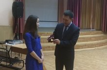 28 сентября (среда) в торжественной обстановке директор школы Хабибуллин Ринат Накипович поздравил и вручил Республиканскую медаль «За особые успехи в обучении» выпускнице 11а класса Абдуллиной Алине.