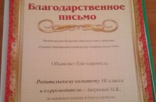 Администрация школы объявляет благодарность родителям 3 в класса (кл. рук-ль: Андреева М. В. за подготовку кабинета к новому учебному году.
