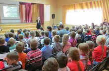 Ученики 3 в класса под руководством Голиковой В. К. приняли участие в концерте для воспитателей детских садов и детей дошкольных учреждений района.-будущих первоклассников.