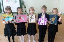 Ученики 1 А класса (Кл. рук. Гайнуллина А. М.) активно принимают участие в оформлении выставки, посвящённой 30-летию школы.