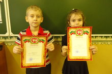 Учащиеся 2 В класса ( кл. рук.: Валиуллина Э.А.) Мусина Ралина и Шевелёв Владислав награждены грамотами за победу в конкурсе «Мини Мисс и Мистер Осень – 2014» в номинации «Самый Артистичный Тандем».