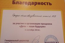 Кл.рук-ли 1-х классов:Андреева М.В.,Борщева Ю.Е.,Гарипова З.Б. награждены почетной грамотой за организацию. городского праздника "Дети-наше будущее"